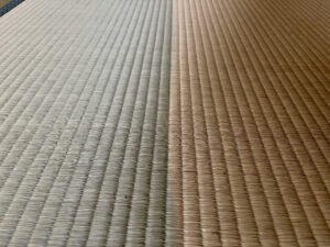 イ草のグリーンは年数とともに退色し銀白色から黄色、黄色から褐色へと変化します。畳表の色が赤みを帯びた黄色に変わってきたら入れ替え・表替えをご検討下さい。